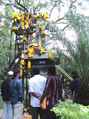 Federation for People’s Rights (Makkal Urimai Koottamaippu) Secretary G.Sugumaran and Organising Committee Members C.S.Swaminathan, P.Markandan, Kalaivannan, Kalidass paid tributes to Social Revolutionary Dr.B.R.Ambedkar in the eve of his 54th death anniversary. They also garlanded the Ambedkar’s statue opposite to the legislative assembly at Puducherry.